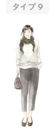 骨格・パーソナルカラーの診断結果に加え、あなたが持っている本来の魅力も分析し、9タイプに分類します。どのタイプかがわかると、毎日の着こなしに自信が持てるだけでなく、ワードローブのアイテムにも統一感が出て、よりコーディネートしやすくなります。