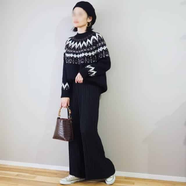 冬の着こなしを、一枚でおしゃれに仕上げてくれるジャカードニットのワイドパンツ。ワイドパンツならではの抜け感はそのままに、リッチな柄がシンプルコーデを大人っぽく格上げしてくれます。